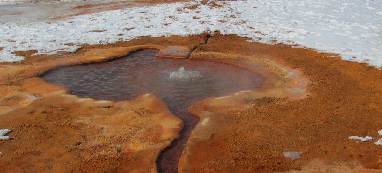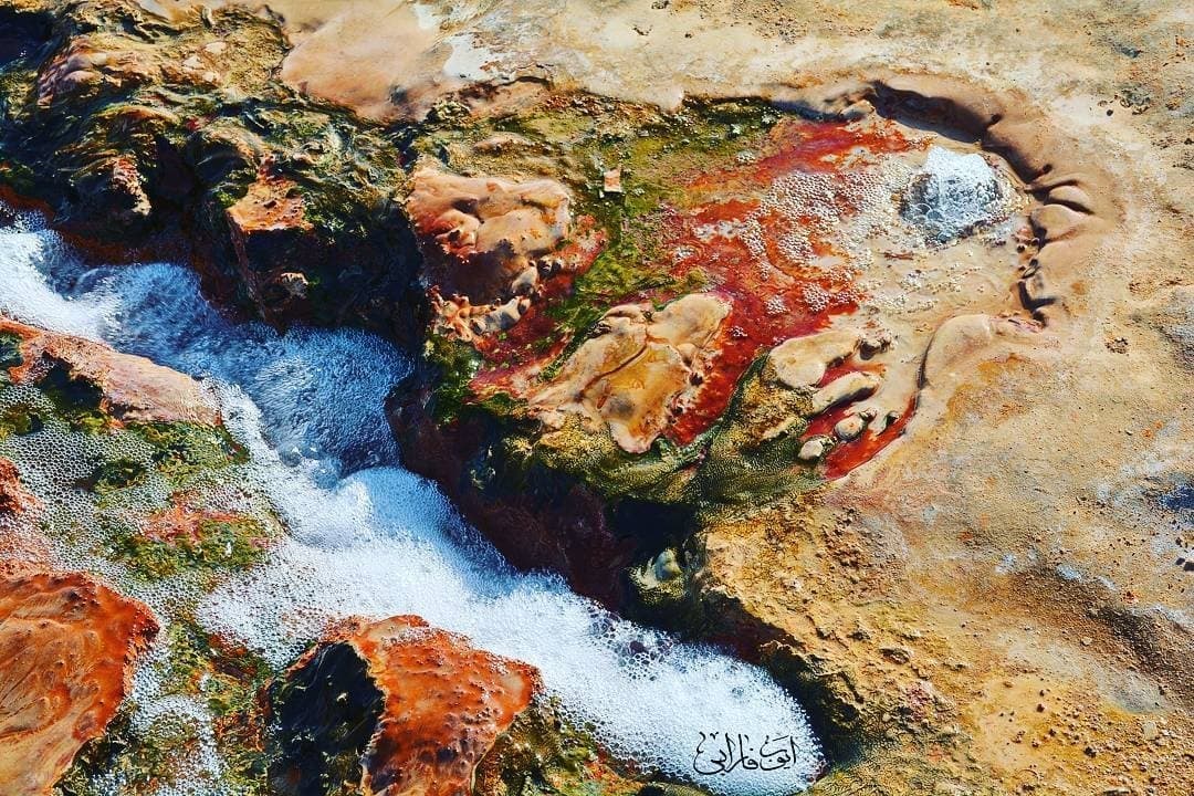 چشمه هاي معدني اطراف اين آب معدني با فعاليت هاي آتشفشاني در ارتباط هستند و به طوري كه از زمين هاي اطراف مشخص است كه در زمان هاي گذشته در آن منطقه كوه آتشفشان وجود داشته و آب چشمه ها در مسير خود رسوباتي بر جاي مي گذارند كه ضخامت زيادي از تراورتن را تشكيل مي دهند.