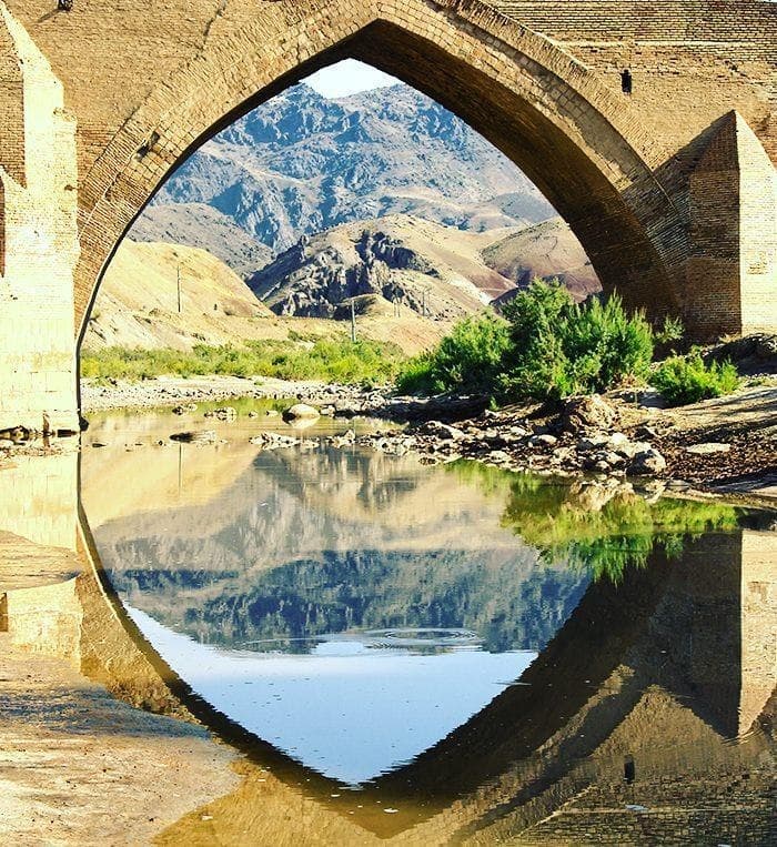 این پل معروف در دامنه شرقی قافلانکوه در فاصله ۲۰ کیلومتری شهر میانه بر روی رودخانه قزل اوزن ساخته شده و دارای سه دهانه بزرگ و محکم با پایه های استوار آجری است که بر روی آب بر های سنگی قرار گرفته است. در داخل پایهها، اتاقهای کوچکی با زیبایی و ظرافت بنا شده است که کنجکاوی هر بیننده را برمیانگیزد بر اساس مشاهدات سیاهان و شخصیت های سیاسی و فرهنگی، در طی زمان های مختلف از این اثر دیدن نموده اند، نوشته هایی به خط نسخ و نستعلیق و کوفی بر قسمتهایی از این پل وجود داشته که تاریخ تعمیر و نوسازی آن را نشان می دهد.
