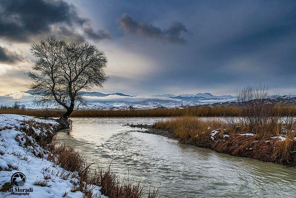 چشم انداز زیبای برفی از حاشیه رود ارس