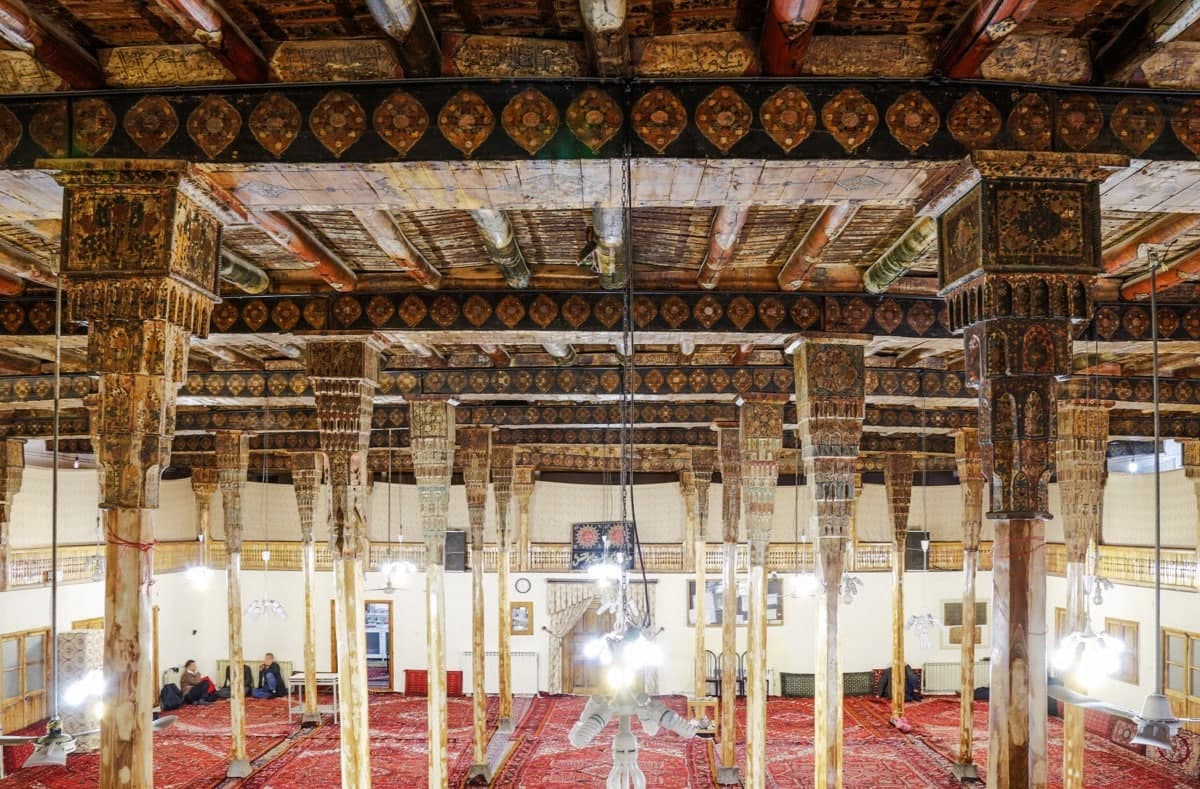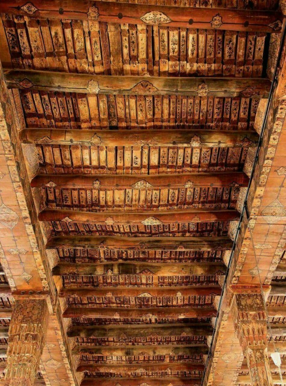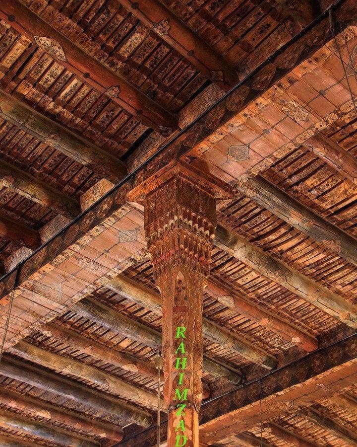 معماری زیبای سرستون های چوبی مسجد تاریخی جامع مهرآباد بناب