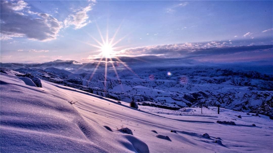 نمایی از طلوع آفتاب در ارتفاعات برفی آبش احمد کلیبر
