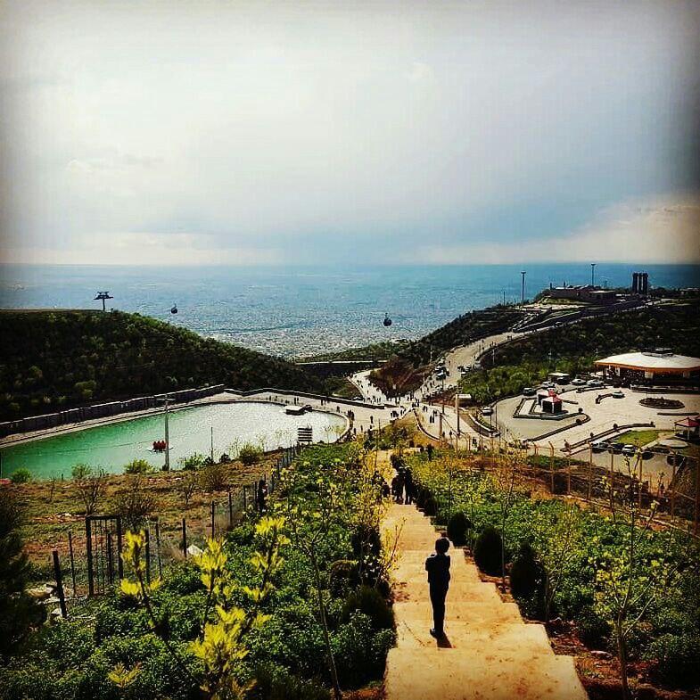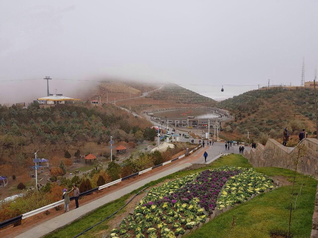 نمایی زیبا از تفرجگاه عینالی (کوه سرخاب) بر فراز تبریز در یک روز بهاری