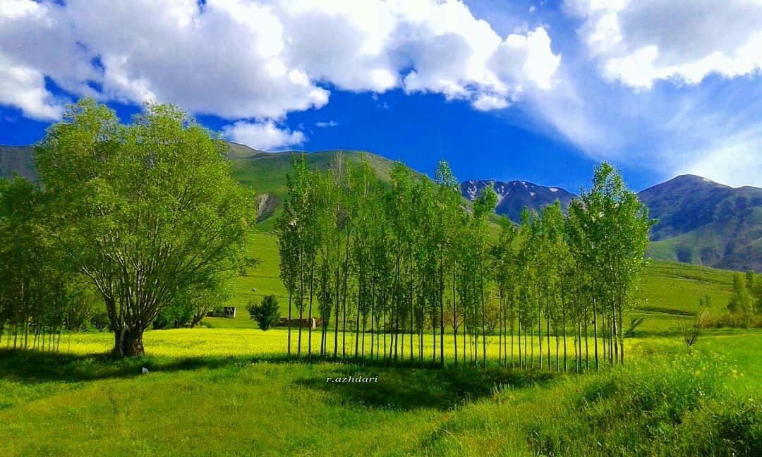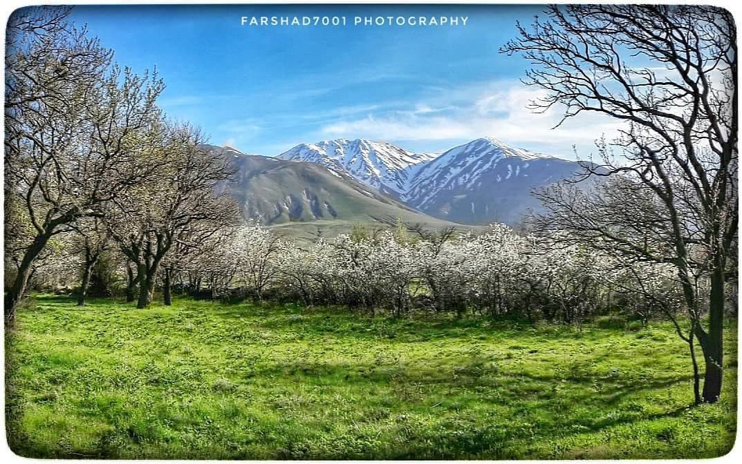 طبیعت بهاری منطقه گردشگري اسبفروشان سراب در دامنه رشته کوههای بزقوش