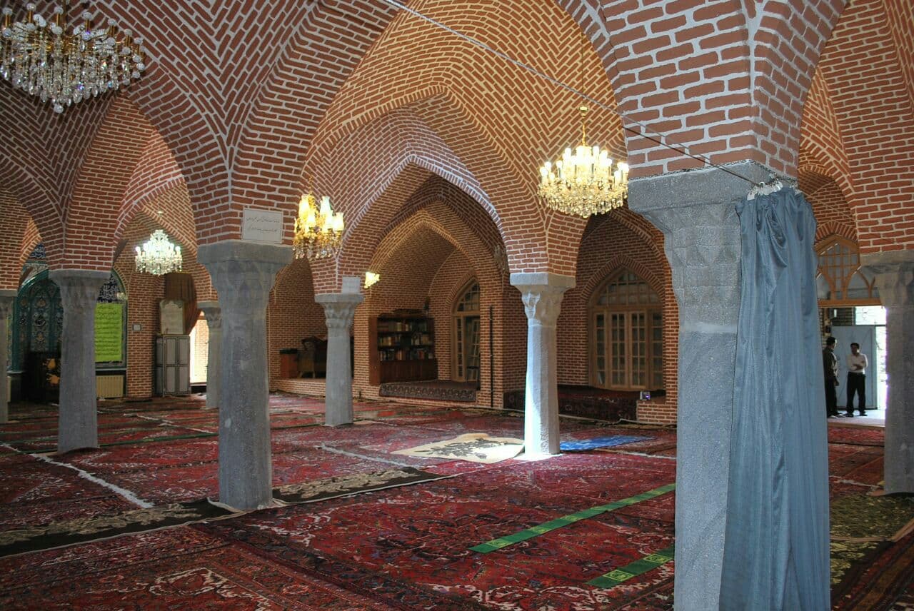شبستان مسجد با ۱۵ باب گنبد، عرقچین آجری بر روی ستونهای سنگی از نوع گرانیت و ایوان جنوبی مشرف به میدان با پایه های آجری و پوشش طاق خونچه پوش و تک مناره در گوشه جنوب غربی دارای گیرایی خاصی است.